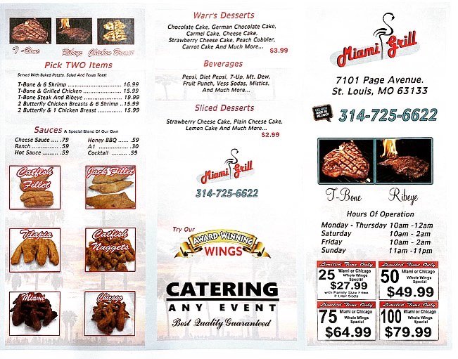 Welcome to Miami Grill, a vibrant culinary gem nestled at 7101 Page Ave, Saint Louis, MO. This casual eatery is a delightful refuge for lovers of flavorful comfort food, showcasing a diverse menu that spans from scrumptious chicken wings to mouthwatering steaks and decadent desserts.